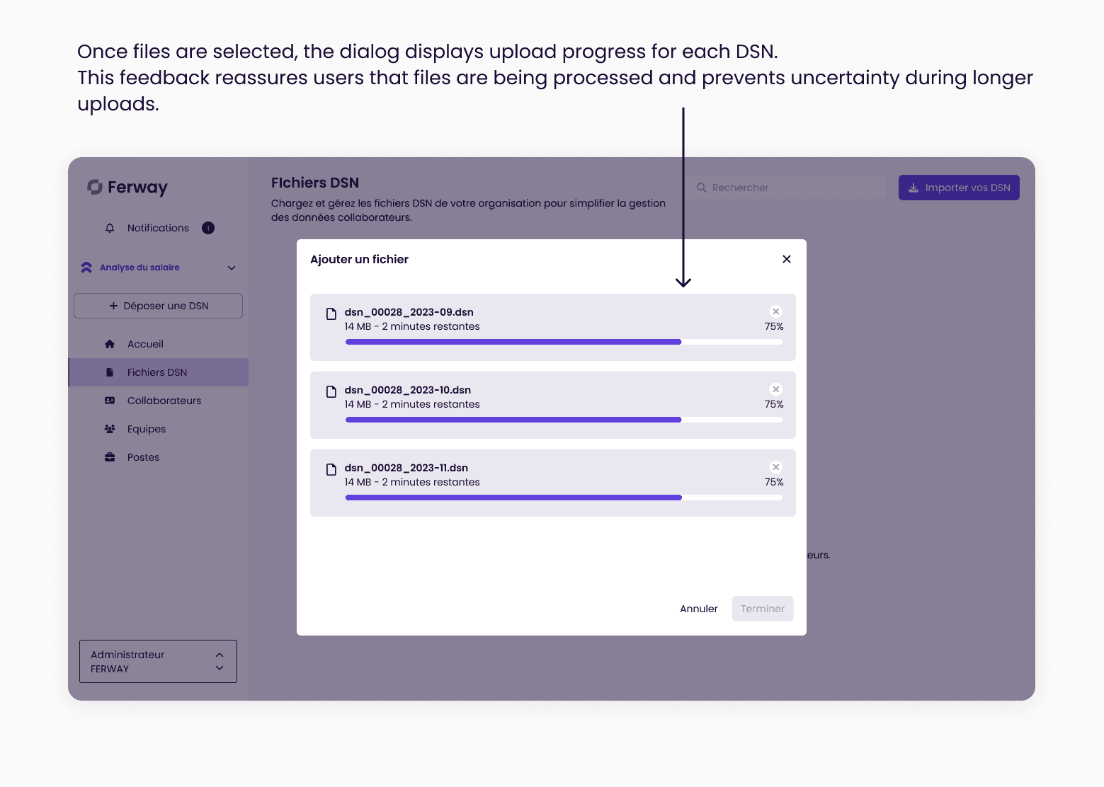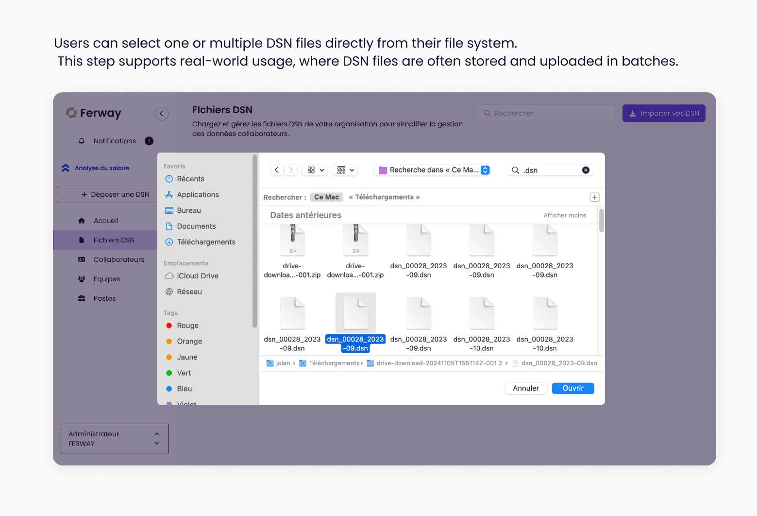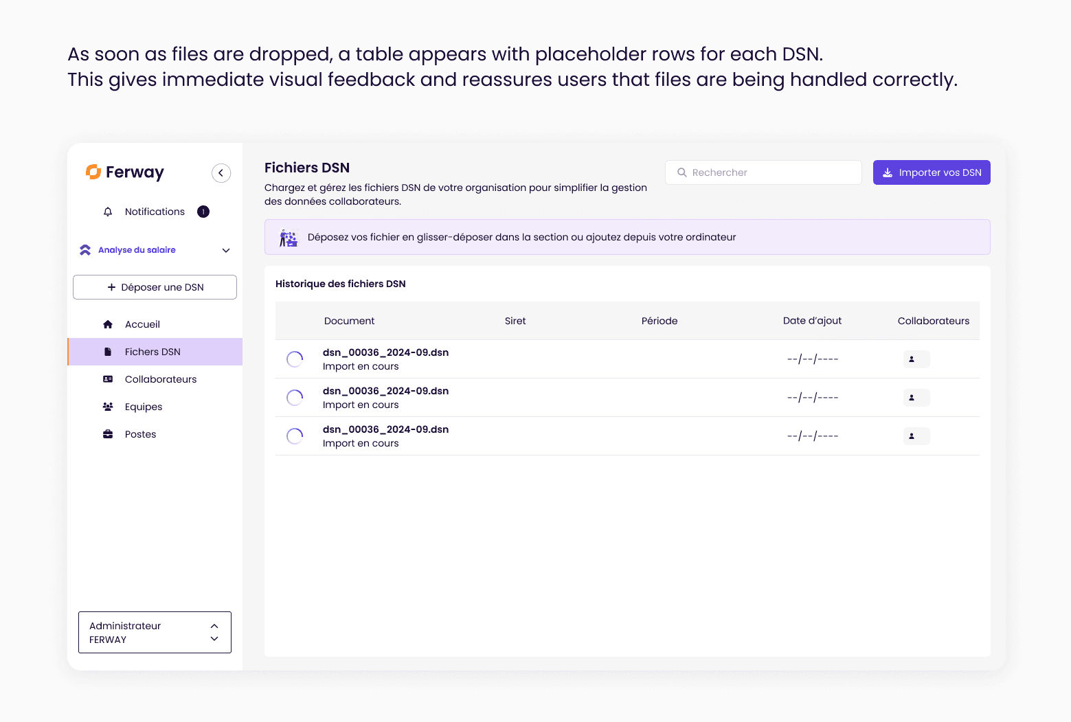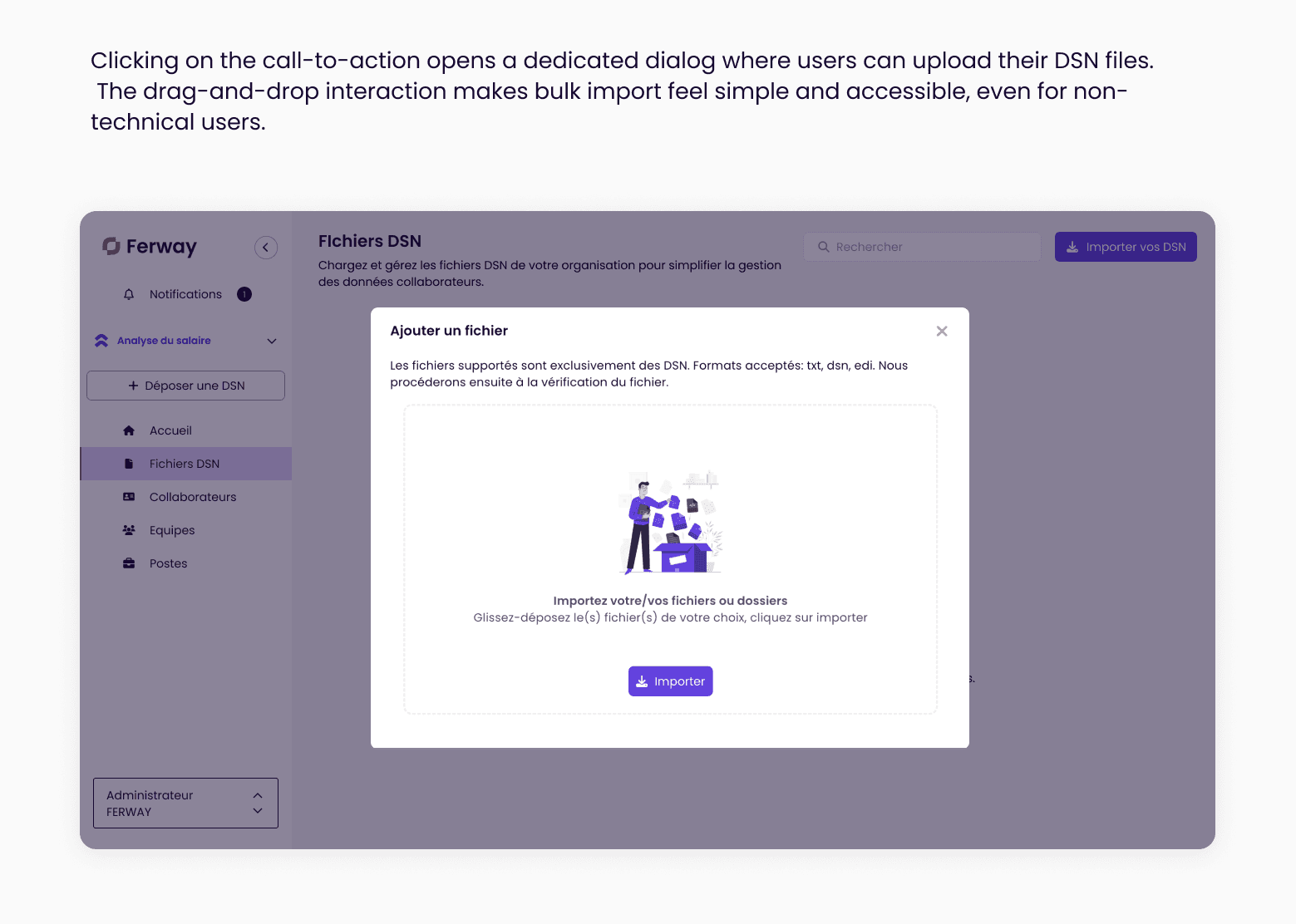 The challenge was therefore to design a clear and reliable DSN import flow that would encourage adoption while handling complex file formats and validations.