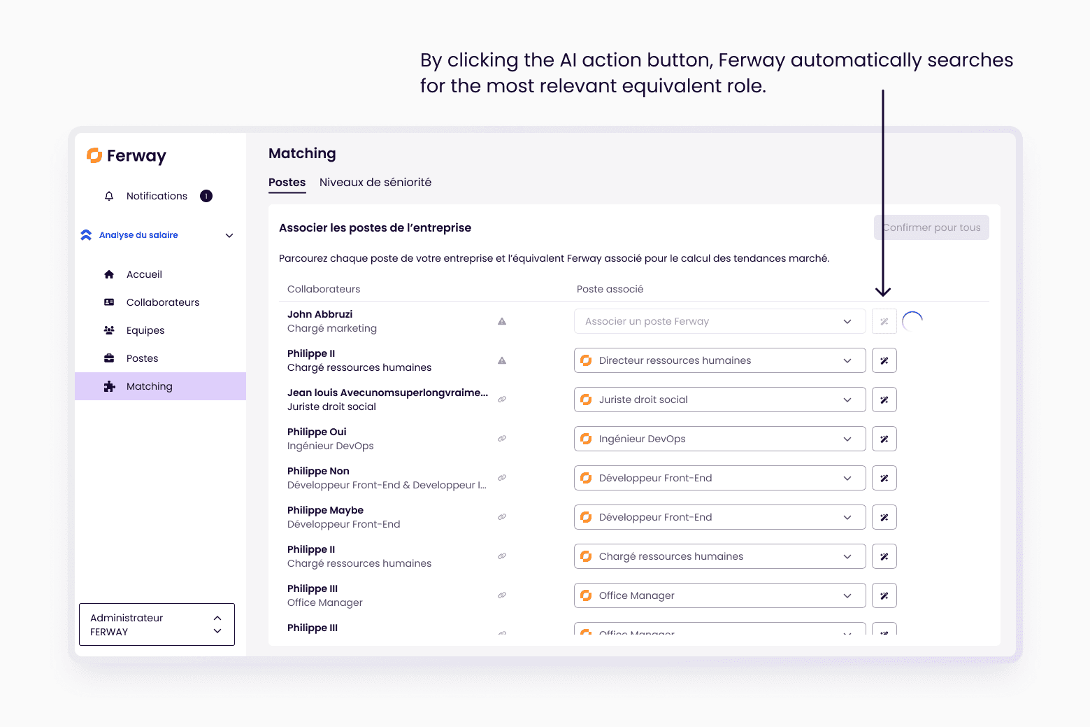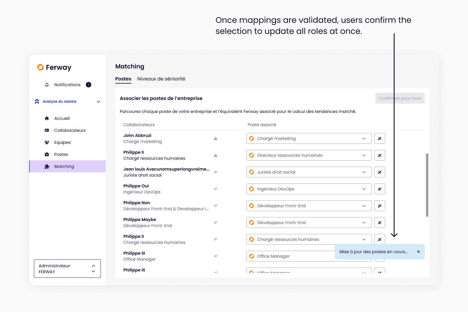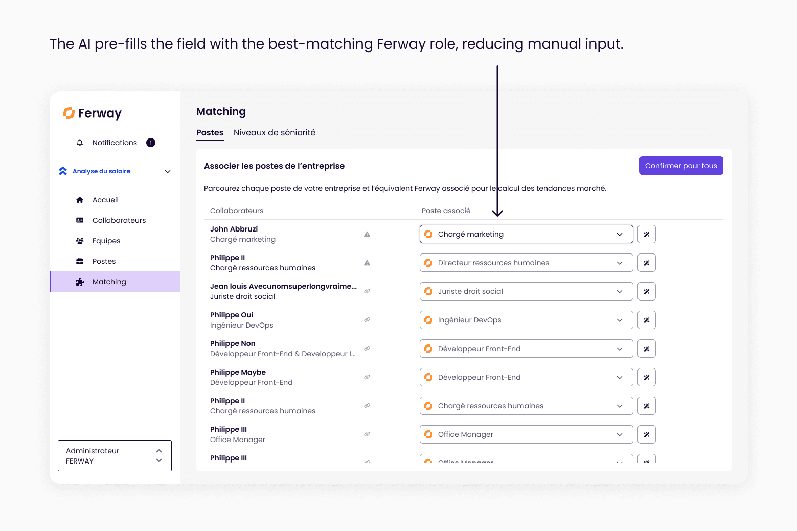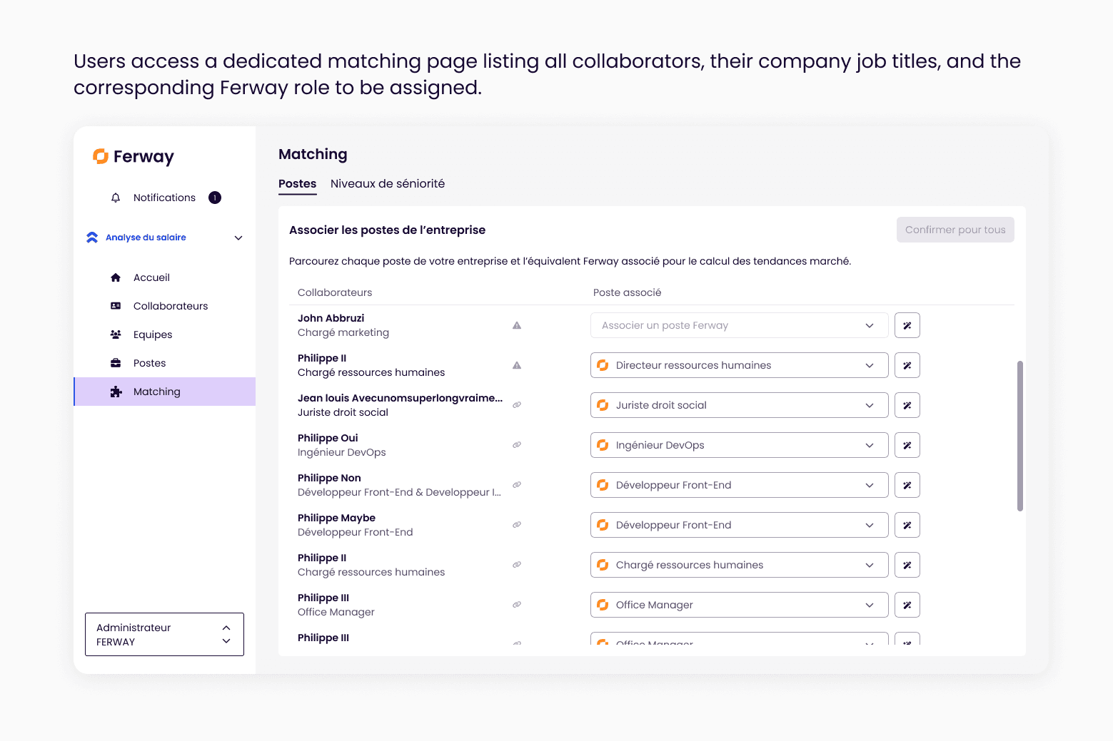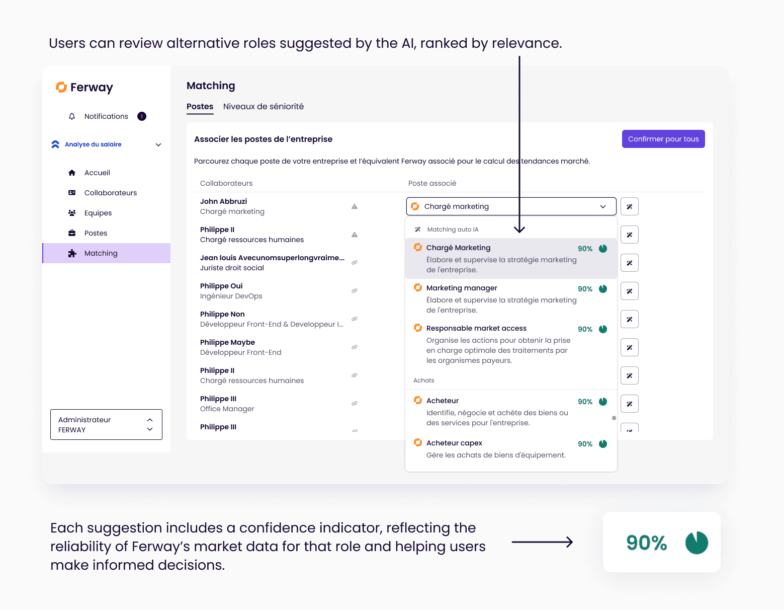 Job titles are consistently aligned with Ferway’s market taxonomy