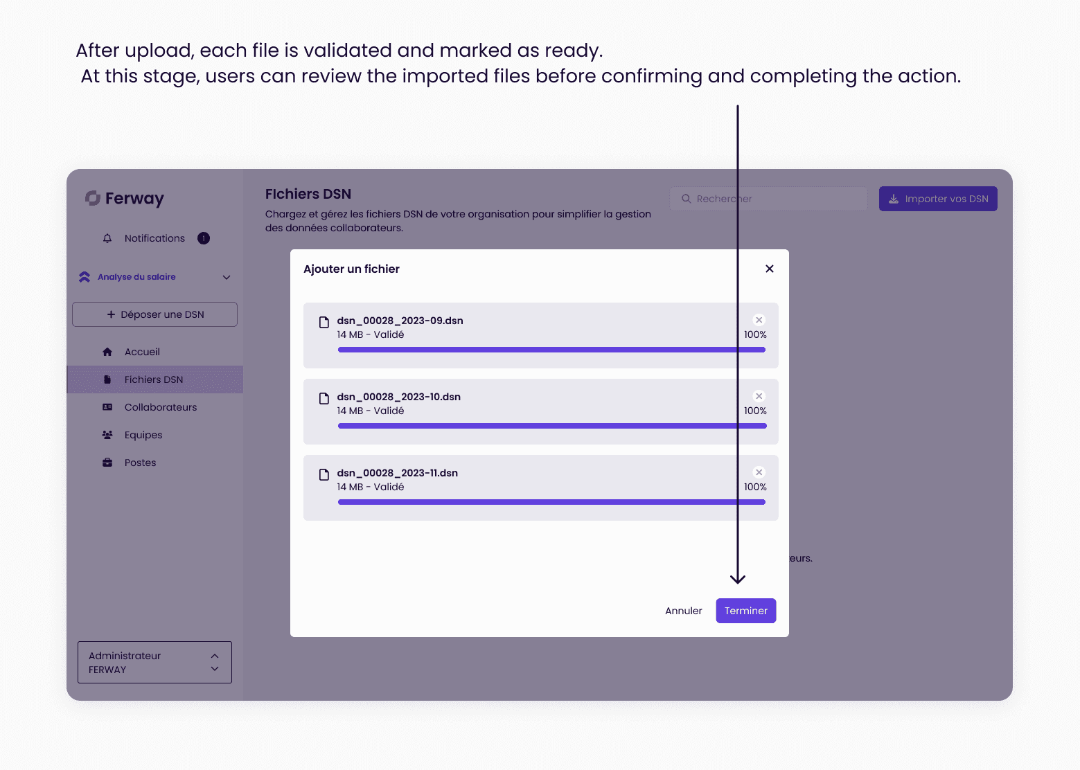 To deliver accurate and actionable insights, Ferway relies on large volumes of HR data coming from sources such as DSN imports or manual employee inputs.