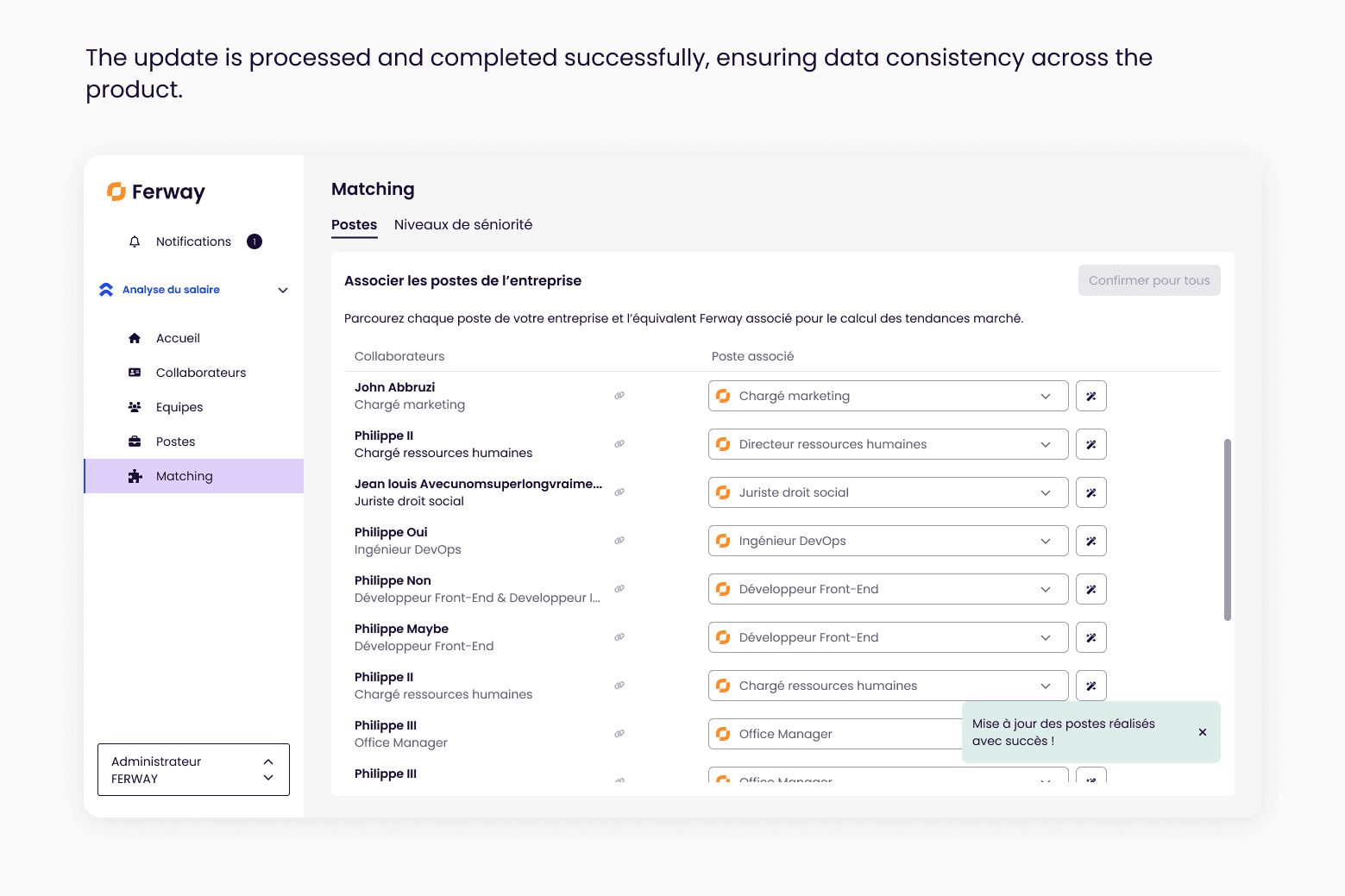 These two project improved how data is activated within Ferway, making salary analysis faster, more reliable, and easier to scale.